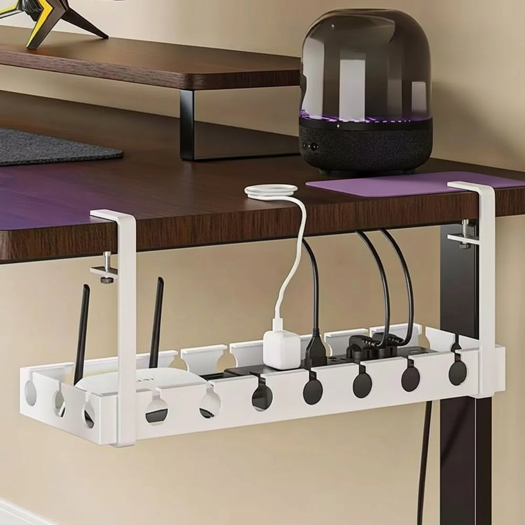 Le MovaTray est la solution ultime pour en finir avec le "plat de spaghettis" sous votre bureau. Grâce à sa conception extensible et son installation sans perçage, il s'adapte à tous les espaces de travail en quelques secondes.